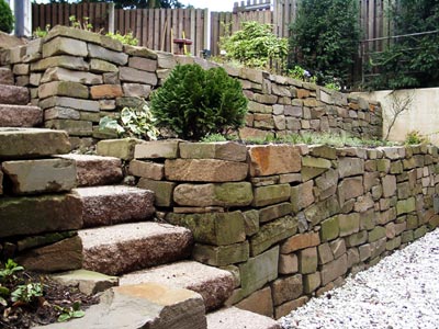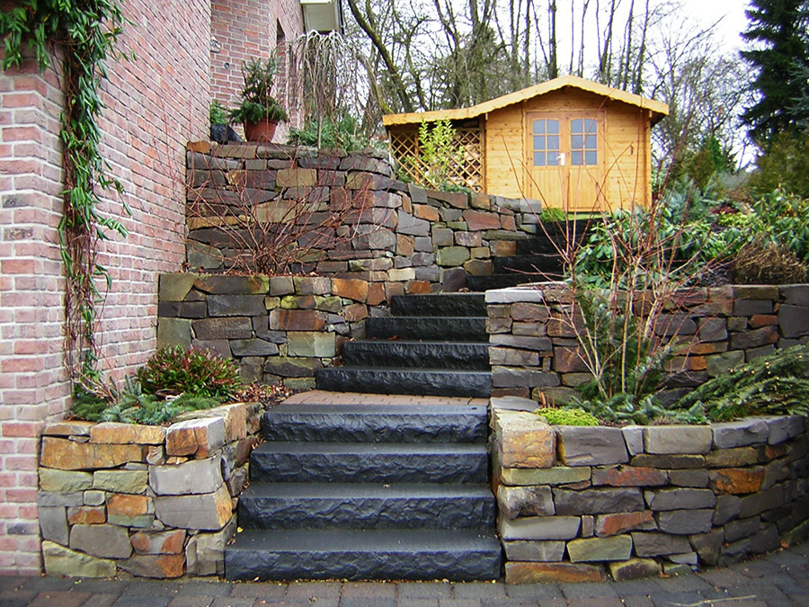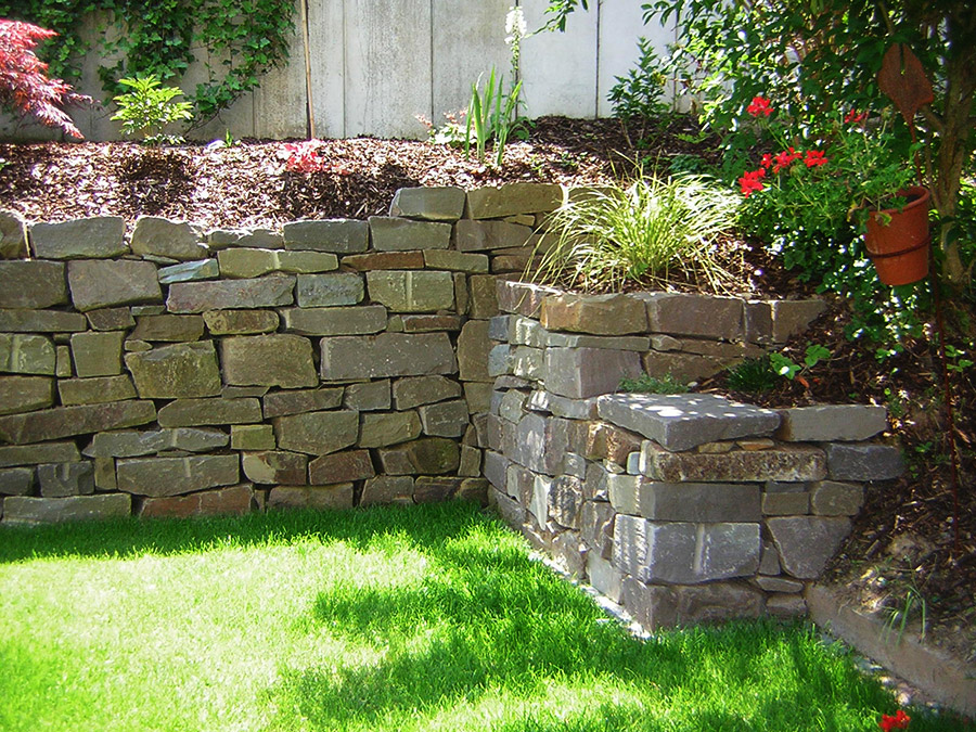 Wir legen Trocken- oder Bruchsteinmauern, um Erdreich abzustützen oder einfach als optische Begrenzung.