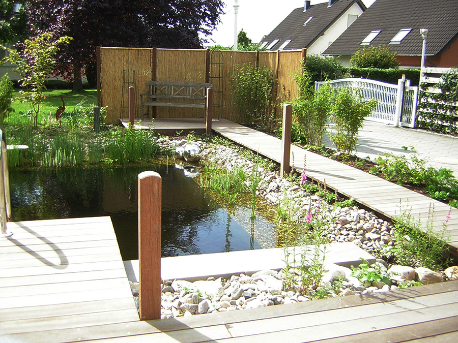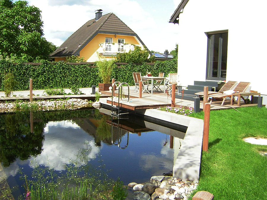 Eine Teichanlage hat einen positiven Effekt auf das Mikroklima Ihres Gartens, wie z.B. eine höhere Luftfeuchtigkeit im Sommer.